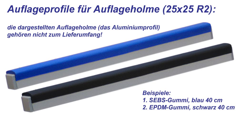Wenn nach langem Gebrauch doch mal die Auflagegummis verschlissen sein sollten, oder auch als Einzelteil zum Selbstbau, bieten wir hier als Ersatzteil die aktuellen Auflagegummis für unser Holmprofil (25x25 mm mit 2mm Außenradius) an.